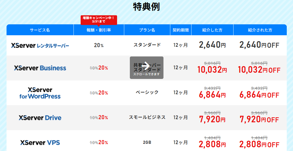 上記ボタンより、友達紹介枠(約20%OFF)でエックスサーバーに申込が可能です(´▽`)
