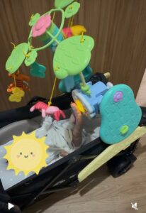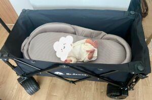 キャンプなどのアウトドア用のキャリーワゴンをベビーベッドにしている投稿を見ました。