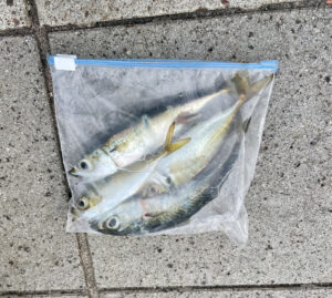 なんとかアジ3匹と鯖1匹ゲットしました(∩´∀`)∩🐟