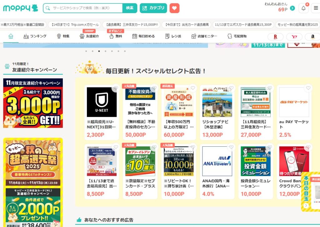 その中で1番おすすめなポイ活サイトは、今のところダントツモッピーです!